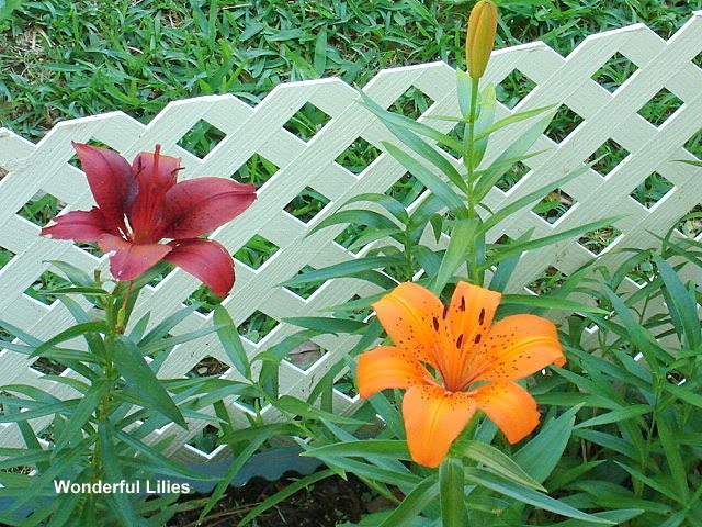 I am happy that my lilies got to bloom with this little piece of lattice to protect them from the Mallards and the bunnies! Last year, the bunny ate every leaf off of the stem! and this year, the Mallards ate some of the buds on the other plants. The Canadian geese just love Marigold blossoms so I have to keep them up on the porch railing in a pot to save them!