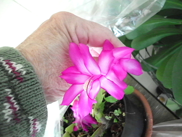 There are Marigolds, Vinca Vine, Petunia, and a sprig of Asparagus Fern still blooming!